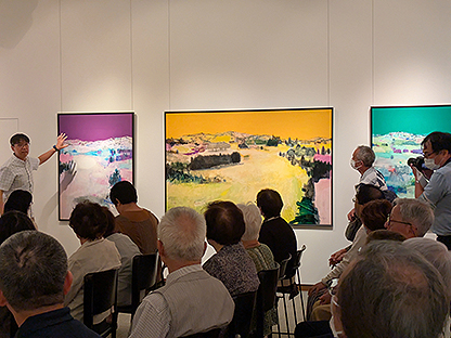 今展では新作を含め40点余を展覧いたします。関口が描き出す色彩の世界への旅をぜひお楽しみください。きっと晴れやかな希望が沁み通って行くことでしょう。